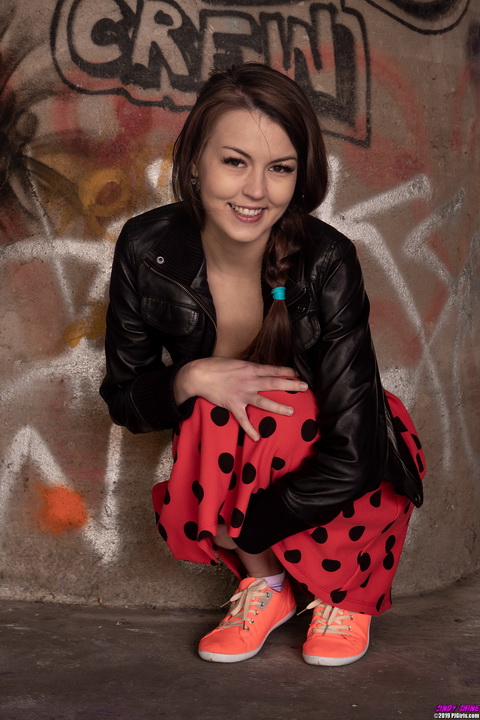 Cute little cunt-spreader: hot even though she was cold!