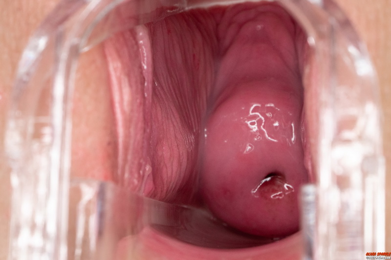 More generally, it would be interesting to know if a girl is ovulating at the time of a speculum video. The 'os' (hole) in her cervix opens more maybe. Her secretions get less sticky and less cloudy, clearer like syrup or egg-white. Yum! Yum!