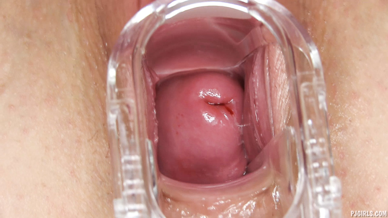 Spoiler alert: once again, we get to see a wonder of biology. When a woman cums hard, all of her reproductive system contracts, not just her vagina. What that means is that her uterus contracts, too, and sometimes a single spot of blood can be seen on her cervix (which is the gateway to the uterus). And some guys think that is very hot—proof that the woman has truly had an orgasm, and not faked it. That's what we get in this video.