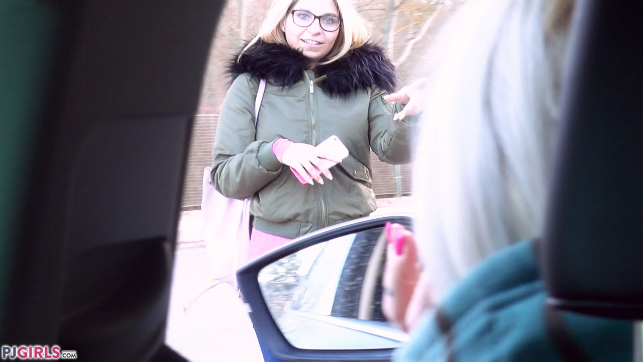 We first meet the lovely Amy standing at a bus stop. Seeing such a forlorn damsel in distress, you WOULD stop to offer a lift wouldn't you? Our trusty chauffeur agrees, and soon Amy is safely cossetted within our fur lined love wagon. Amy is of course expected to make the usual payment for her transport and obediently climbs into the back to divest herself of every stitch of clothing.