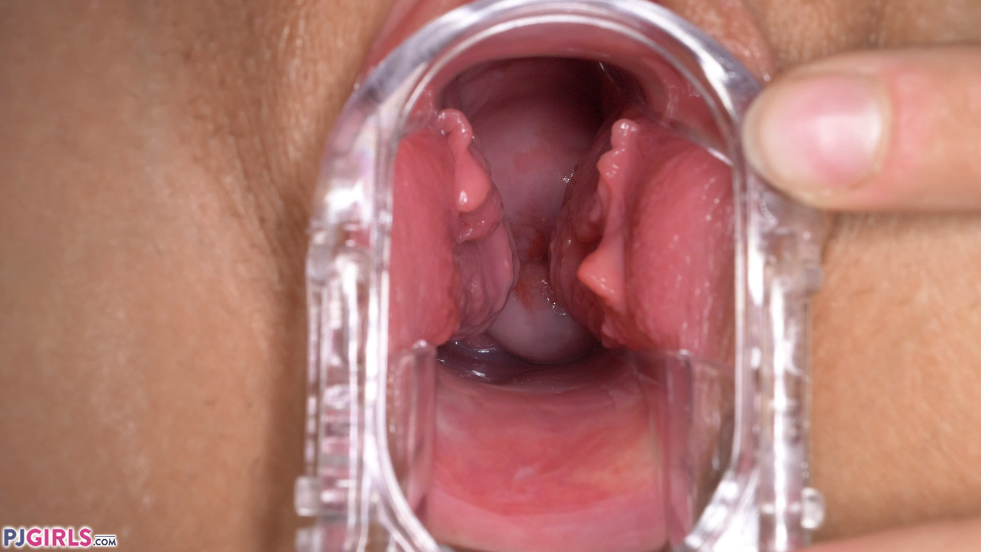The camera goes in for an extreme close up. Asdis holds the speculum inside her so it does not come out again. She cums very hard, and her pussy pumps and contracts with pleasure; the orgasm very evident by her body language, and by her moaning. She gets the speculum out, and shows us her pussy juice. Her pussy is soaking wet after the two orgasms, and she wants us to know how much fun she had. She finishes this video with some gorgeous gapes, and makes her pussy make some noisy wet sounds.