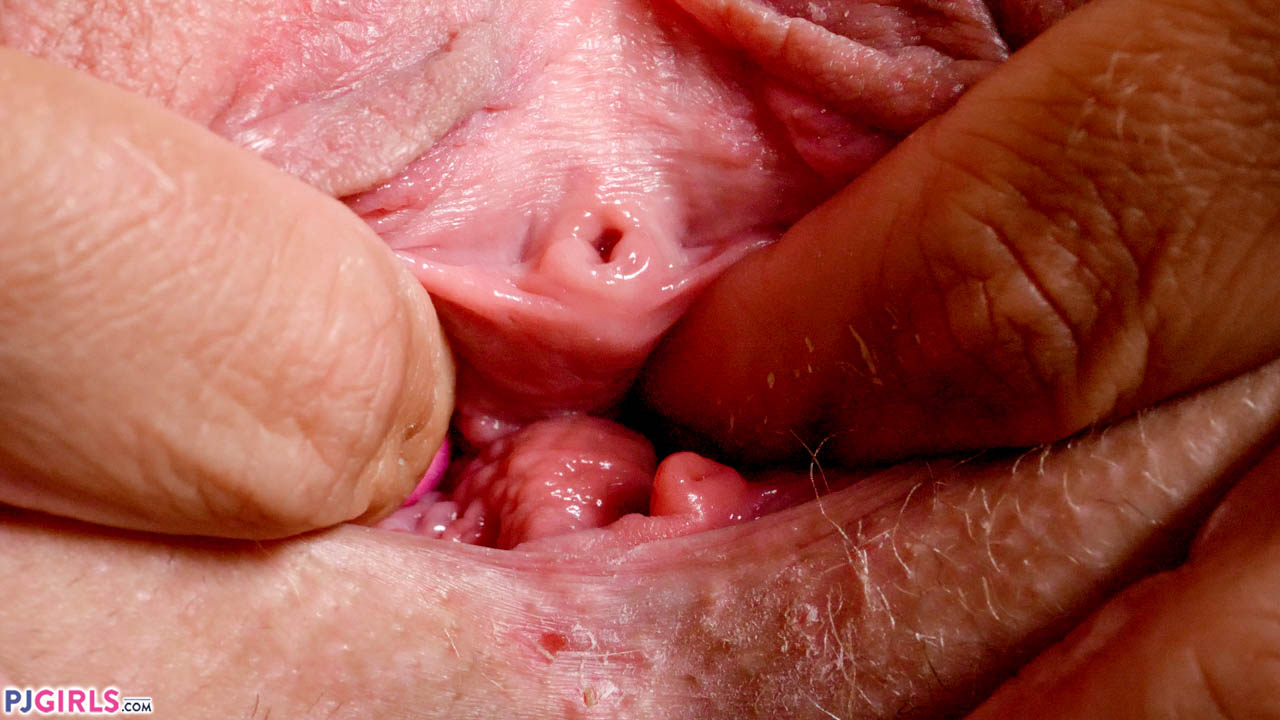 Caroline casually strolls to meet us under the bridge and equally casually lifts her skirt to let us enjoy the view of her lovely smooth pussy and shapely thighs. Caroline is naturally flexible and provides a beautiful view of her vagina entrance first from the rear, with the added bonus of her gorgeous ass, and then from the front - with an even wider gape. Her inner lips and tunnel entrance glisten with creamy girl goo... just begging to be lapped by an appreciative tongue (any volunteers..... stampede?). Her slightly hairy anus, her pee hole and her clit are all held as a perfectly focussed frame to her creamy cavern. Towards the end of the video, we zoom in even closer so that the entrance to her delicious pussy fills our screen. Wunderbar!!!