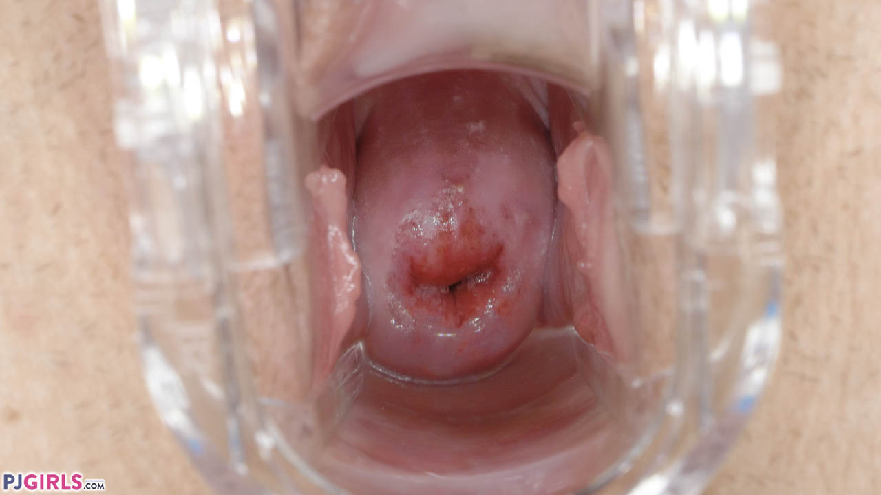 Cunt gaping wide open and cervix on display!