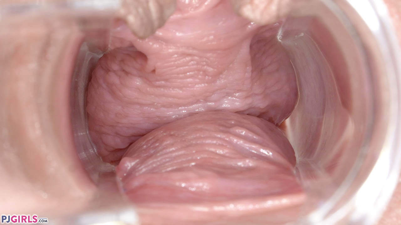 There is plenty of finger stretching both fore and aft, and then the promised speculum scene. Claudia is deep enough that we don't get to see her cervix this time, but her vaginal rugae (all those pink ripples and moist folds) are a delight.