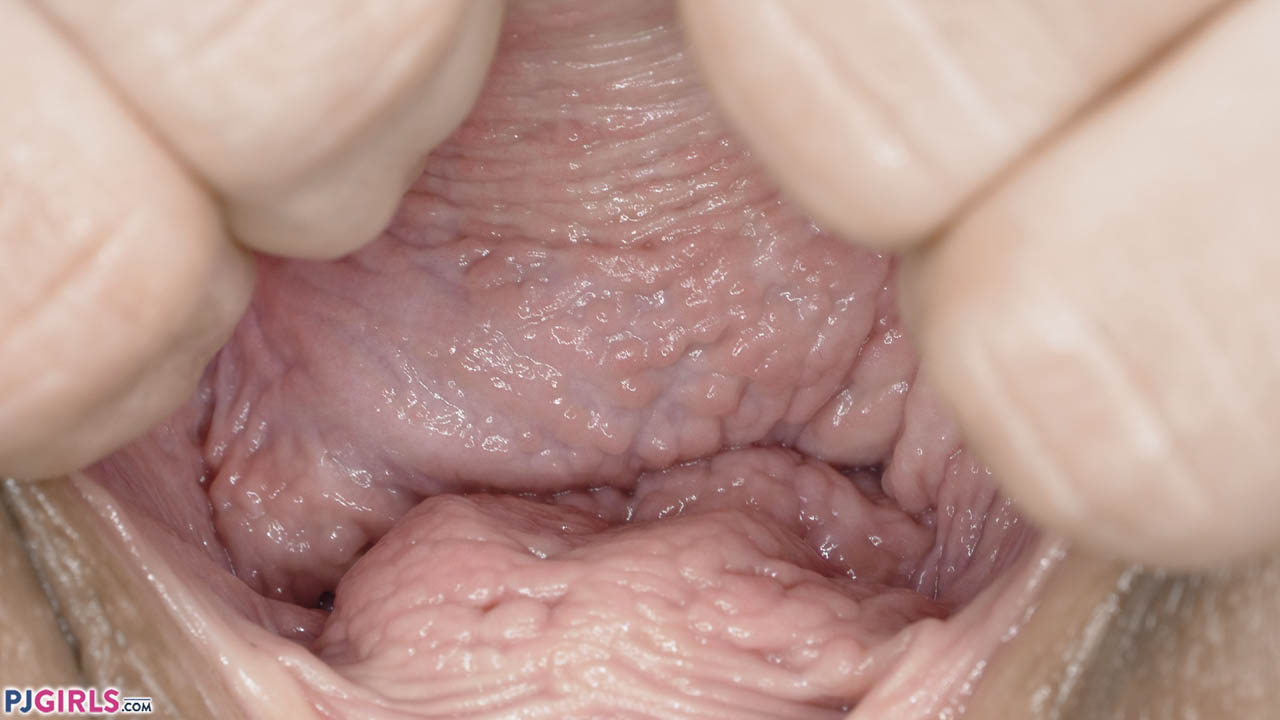 If you want to dive into a stretched wide-open vagina, then Kristina is the model for you! The video starts with a short display of Kristina groping her small breasts, but quickly she removes her shorts an you are treated to her delicious natural open gape. And with no hesitation, she inserts four fingers and stretches her cunthole open wide for us to see. Of course Jiri gets in close, and we can marvel at the complexity of her rugae, but in my opinion, what really makes this video great is Kristina's smile and her moans. And she is so enthusiastic about showing us the depths of her vagina! The video shifts to a rear-view which makes her pee-hole more pronounced, and Jiri gets in very close, putting the camera just where we'd like our own eyes to be!