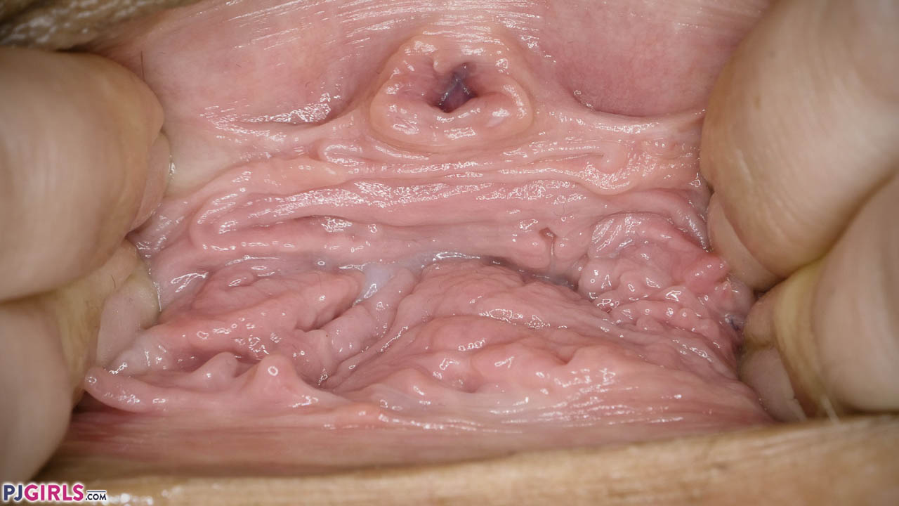 Some of the movies on PJ girls feature the model in a variety of positions, displaying her pussy from a number of different angles. This video of Ria only has one position, with Ria lying on her back, her legs spread in an inviting "M" shape, and her cunt spread open in a variety of degrees colon from open, to really open, to holy fuck that's a huge hole!