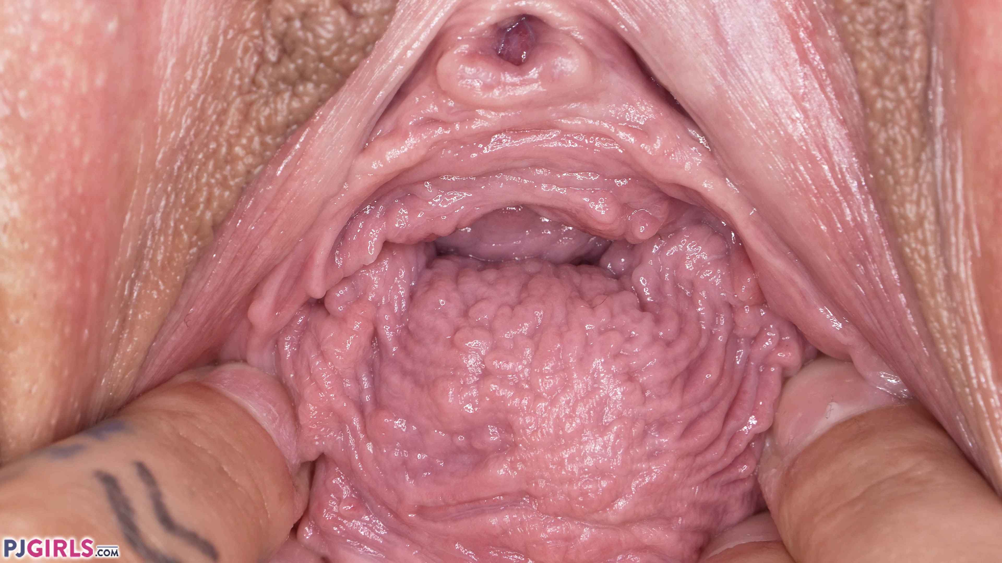 It's really great when a woman opens her pussy for us, but it's even better when a second woman opens a woman's cunt for us to explore! Alexa throat does a great job of probing and stretching Ria's flexible vagina for us, letting us see all of her interior details.