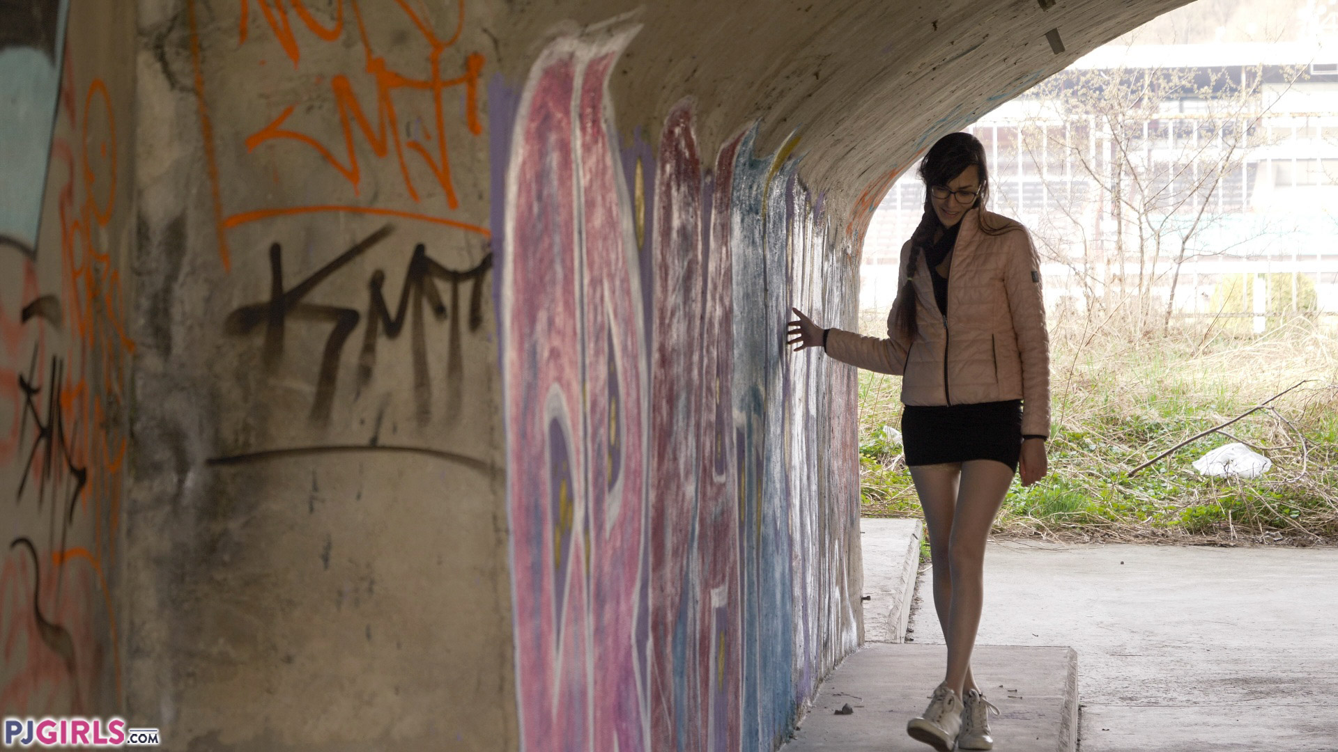 We know we're in for a treat even as the video starts. Ashley is under a noisy bridge, dressed in a miniskirt and down jacket, and she walks towards us. But she doesn't stroll, she sashays like a model, with her feet crossing over like she's on the runway. It is a calculated move, because when a woman walks like that, she knows that it makes her hips sway, and it is a pure "showoff" walk. It says "LOOK AT ME". So we do :-)