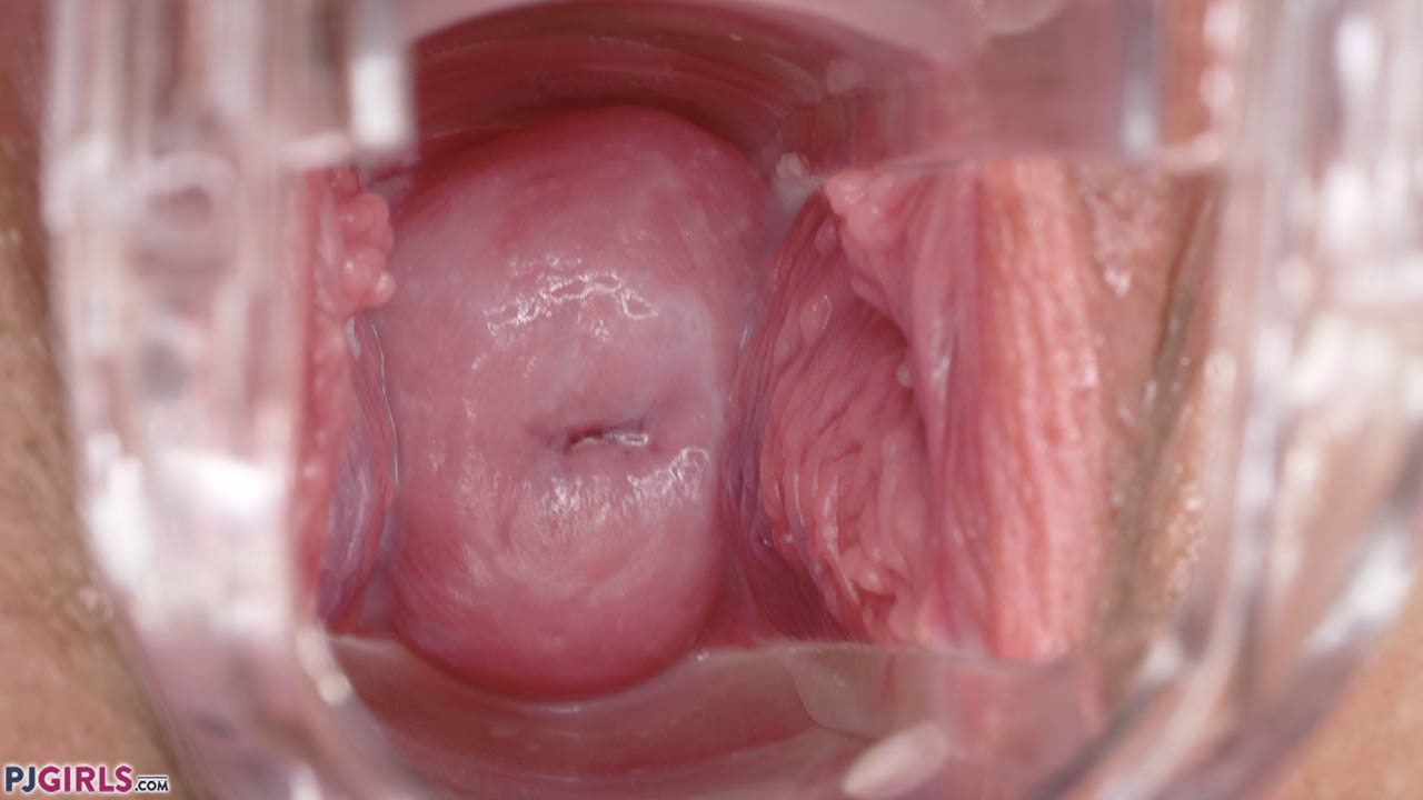 Our most beautiful redhead, Charlie is a delight to behold. Sitting on the edge of the kitchen worktop, she raises her short black skirt to show her bare pussy. Without further delay, she grasps the clear speculum to insert it deep, providing a clear view down to hr perfect pink cervix. She rolls her top up, showing us her augmented breasts, before returning her focus to her open pussy. Looking deep inside, we can see that her walls are coated with a creamy glaze of pussy juice. Her walls are gently rippled and her clit stands erect above the chasm. The view inside as Jiri zooms in is utterly delicious, Charlie's rippled walls being show in perfect detail. It's always great to watch a girl fucking herself with a speculum - and this is no exception. The undulation of Charlie's walls and the rise and fall of her cervix is just gorgeous (great sound effects too!). Charlie swaps the speculum around to show us her upper and lower walls (love this - thank you). Her rippled walls now beat a path all of the way to her pouting urethra. Magical!