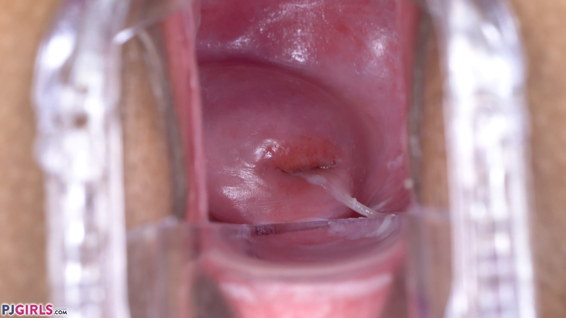 As Cristina squeezes her pussy walls, her cervix rises up and down, always maintaining its life line of cum to her walls.
