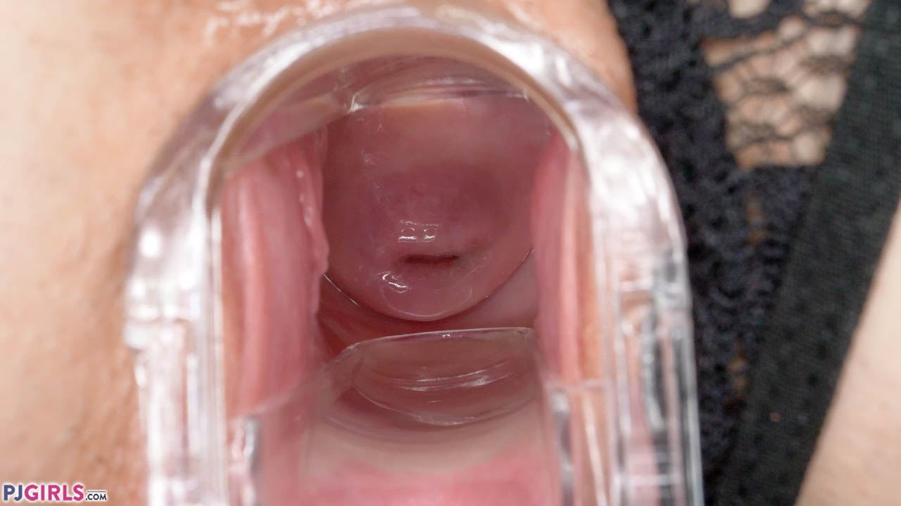 Tabitha is super slim beauty above the waist, with striking grey eyes. Beneath her naval however she has a smoothly curved but and one of the prettiest pussies you could wish for. She stretches this wide, giving us a great view of her open urethra, before inserting a speculum to improve the view. And what a view it is! Jiri manages crystal clear focus on Tabitha's rose coloured cervix, as the speculum is moved in and out.... never losing site of her glistening depths. As we near 9 minutes, the view goes to macro, and one of the best exposés of the inner details of a beautiful pussy on this (and therefore any other) site. We are permitted to gaze in adoration at Tabitha's undulating walls and glistening depths from all angles. The internal side views in particular are stunning!