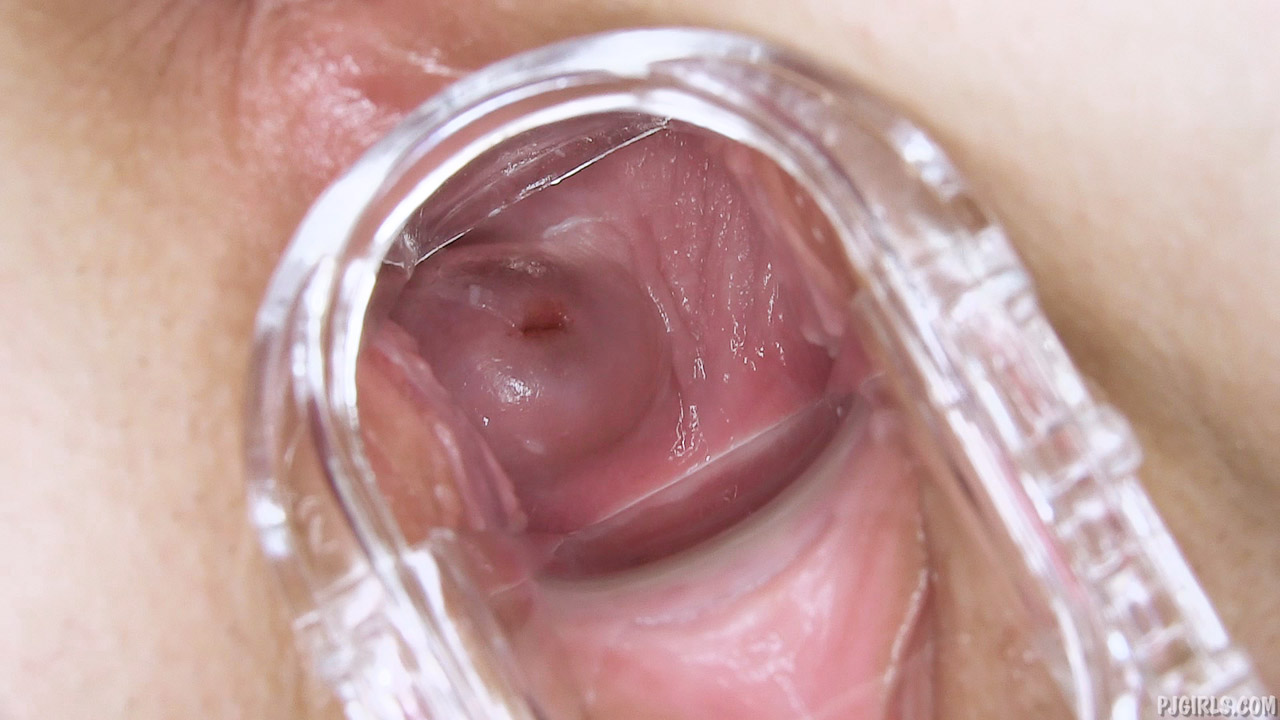 Our photographer gives us wide shots and closeups, and Snow shifts to a wide-open squat and then a nice rear-view with the speculum inside her. For you biology fans, you can see that her pretty cervix is offset a little laterally (that is, to the side), but don't worry, it is perfectly normal. We can also see that her vaginal muscles are very strong when she clamps down on the speculum. The camera zooms in for some nice closeups, and you can see how opened up snow is on the inside (you can also see from the ripples of her vagina that she can open up even more). What's really hot is when she contracts her vaginal muscles, you can see different parts of the inside of her cunt moving at different times, so that it all looks very alive inside that wet cave.