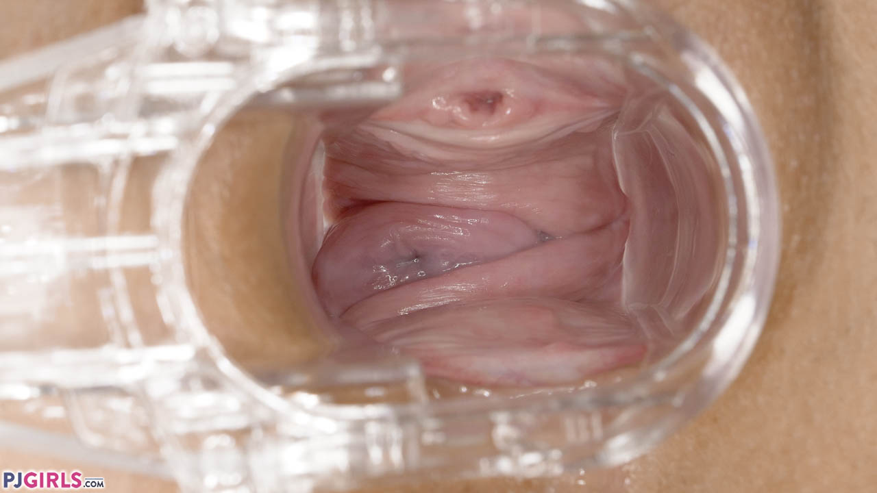 WIkipedia says that "Tunnel vision is the loss of peripheral vision with retention of central vision, resulting in a constricted circular tunnel-like field of vision", and I admit it, I have tunnel vision. We get a great view looking up Joana's moist pink circular tunnel, and what do we see at the bottom? The cyclops eye of her cervix staring right back at us, and her vagina is certainly not constricted, it is wide open!