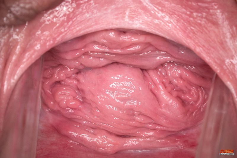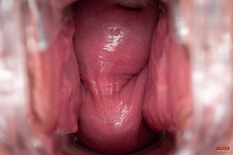 Trägt Claudia ein Spekulum als Teil ihrer regulären Garderobe? Andere Mädels tragen ein Höschen, sie hat dafür ein Spekulum in der Scheide. Ich mag diese sehr detaillierten Blicke in ihr Fotzenloch.