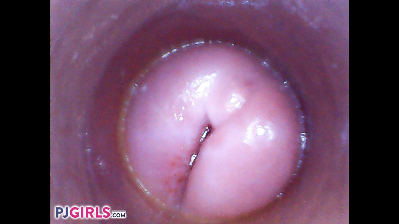 Dianne's tunnel of love is obviously quite relaxed, as it parts willingly to reveal a very gooey cervix. Dianne's cream follows us as we retreat along the passage in a tsunami of syrup. Sometimes less is more, and the small manoeuvres of the endoscope illustrate that here, allowing us to watch each inner undulation slide past in slow motion. The view as we exit Dianne's vagina to revere its full glory, only to slowly move within once more, is utterly beautiful as first the outer, then inner lips part before us.
