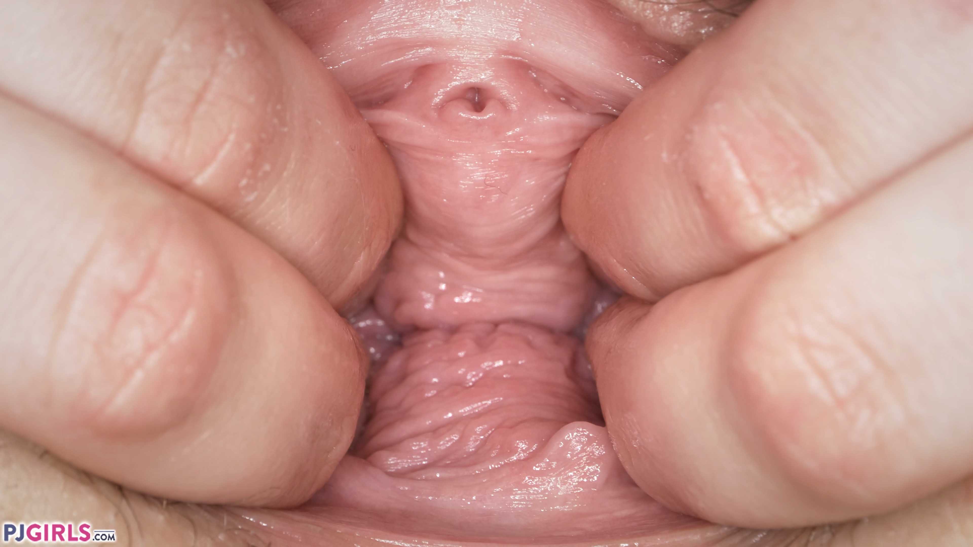 Starting in a squat with Jiri in close with the camera, Boni pulls apart her labia to expose her pink tunnel, the hair in her pussy providing a beautiful frame for her pink insides. Then, lying on her back, she inserts first two and then four fingers into her moistened vagina, and stretches her cunt open for us to look into. Jiri's new macro lens gets right up close to the action, so you can see her folds and ripples in beautiful detail.