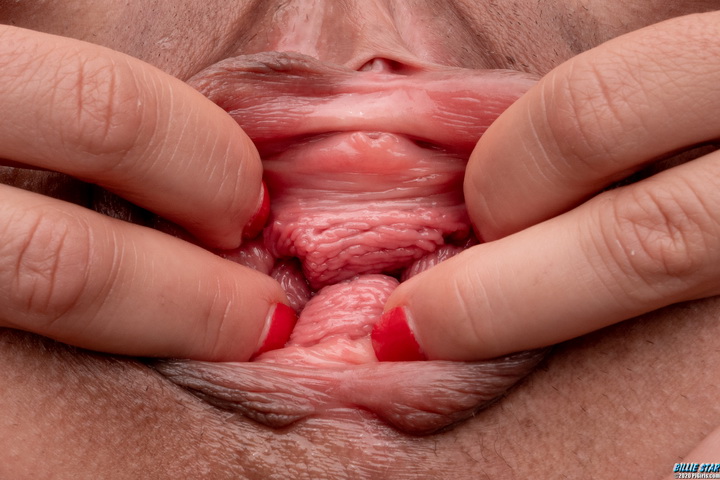 Our apologies that the spreading action is slightly limited and a smaller dildo had to be used. The video was shot first and as a result Billie's pussy has become swollen.
