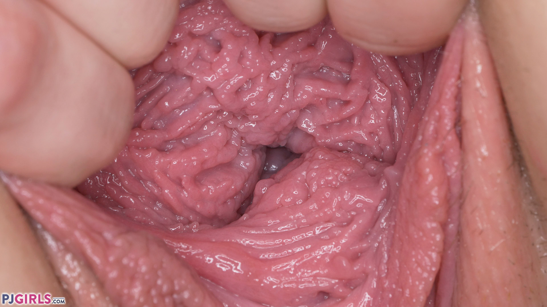 Tits, smile, and what a beautiful wide-open cunt. It gets better as our cameraman gets closer, because now it is five and six fingers. And the camera gets as close as you please, and its wall-to-wall vagina, all ripples and folds, and Angel is not afraid to really stretch it wide. Then she switches to doggy, and yes... you can see her cervix hidden in that pink wetness :-)