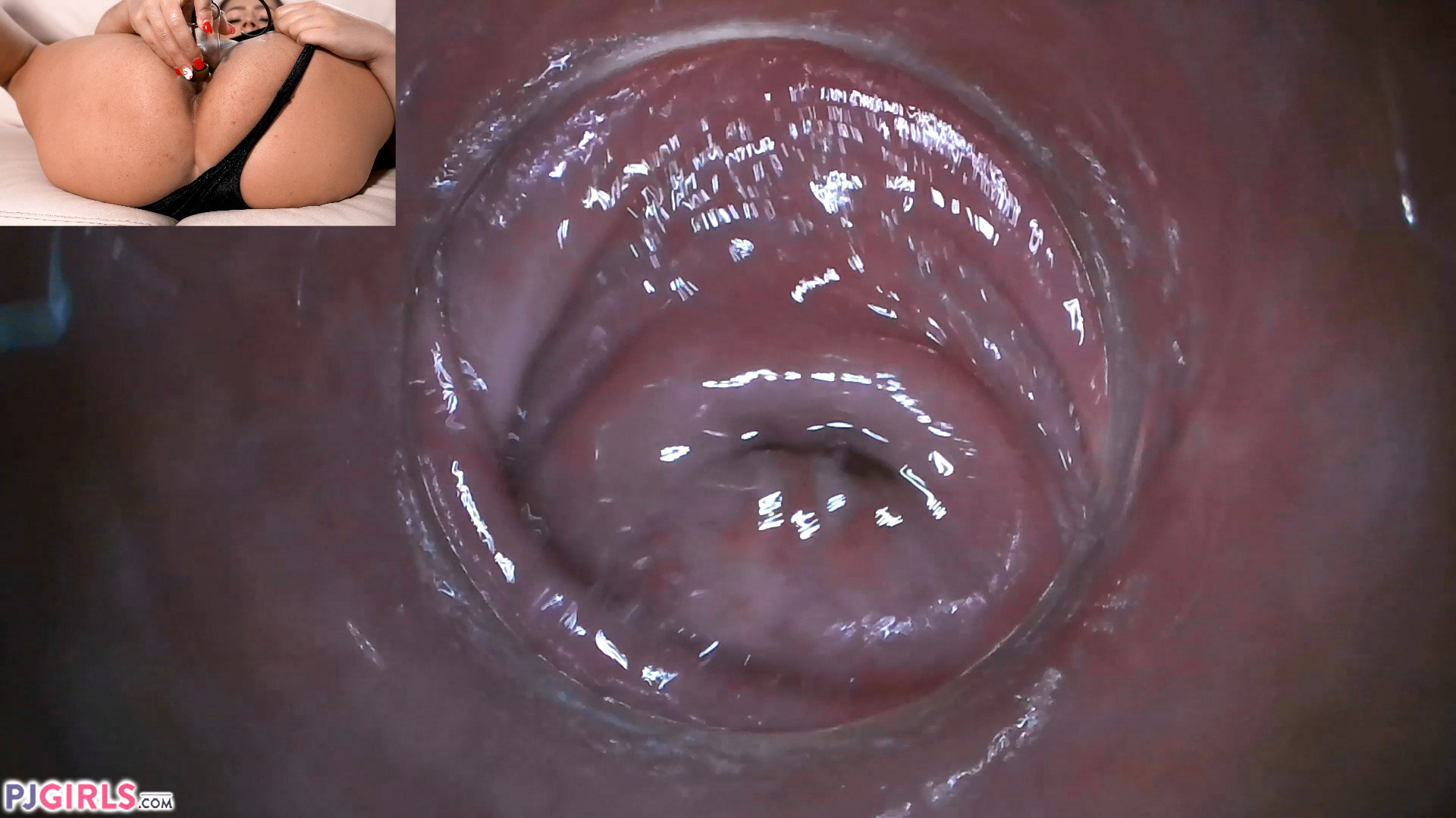 The Piledriver like position with the pussy pointing up works wonderfully with the pussy cam! It creates a tunnel view from the entrance to the cervix.