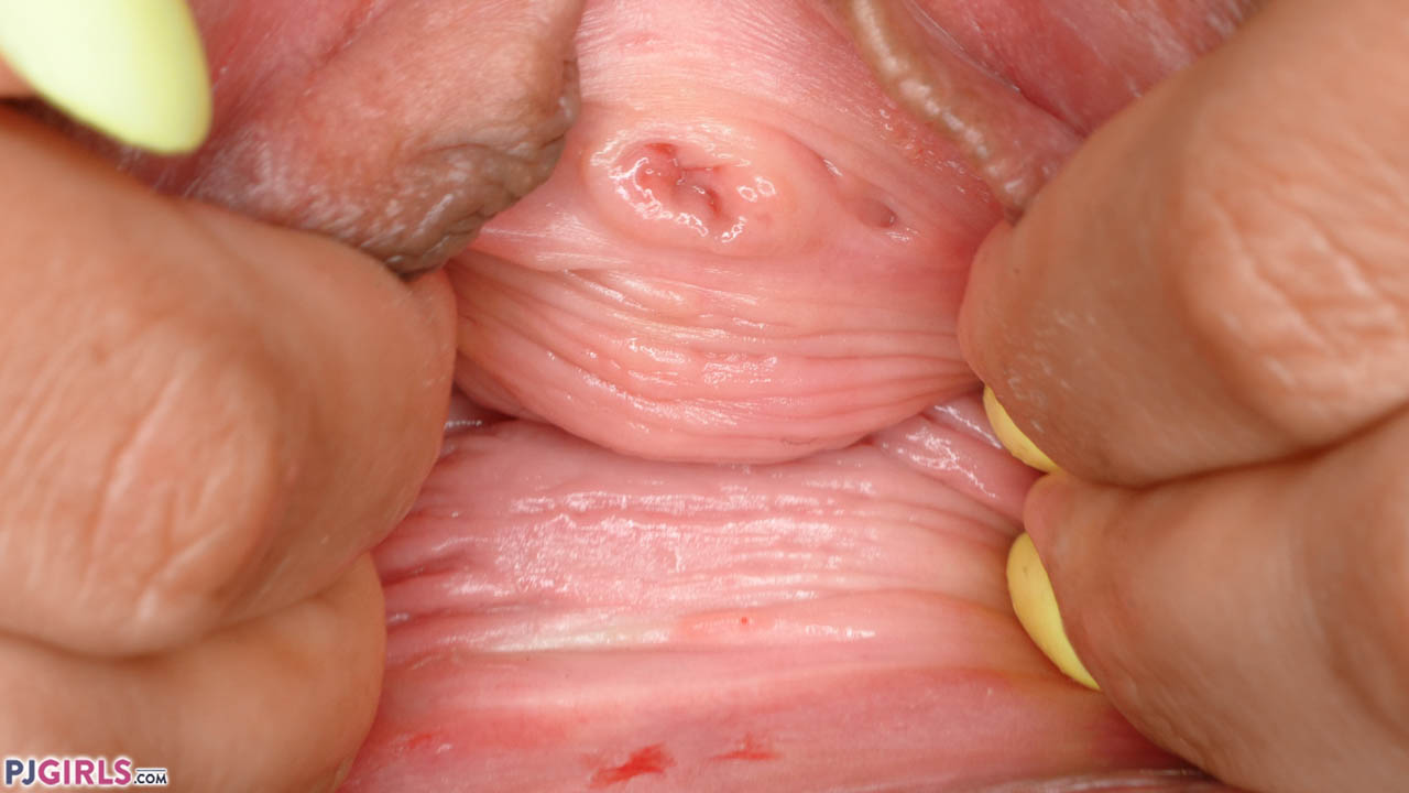 As Gina joins us for her second video she is elegant, demure and sexy as hell in a white shirt and black briefs. Opening her shirt, she massages her firm breasts and plays with her dark nipples. The view of her boobs is gorgeous at 2 mins 40, showing a perfect outline of Gina's lovely figure and beautiful face. Standing up, Gina removes her briefs to show her neat milf pussy, which she begins to open wide for our viewing pleasure. This "upskirt" angle is great, still showing the remainder of this lovely lady above her delicious open pussy. The main event begins once Gina sits down again, her legs as wide open as her pussy, with the camera slowly zooming in until, by 13.30, her pussy fills your entire screen. Gina's urethra is in perfect focus, and slightly parted, allowing us to study even this most intimate part of her yummy cunt. I must confess, the urge to flick her pee hole with my tongue and then upwards to her clit was quite overwhelming! Gina squeezes her moist walls for us, bringing the ripples of her cunt even closer. Can't wait to get closer still!