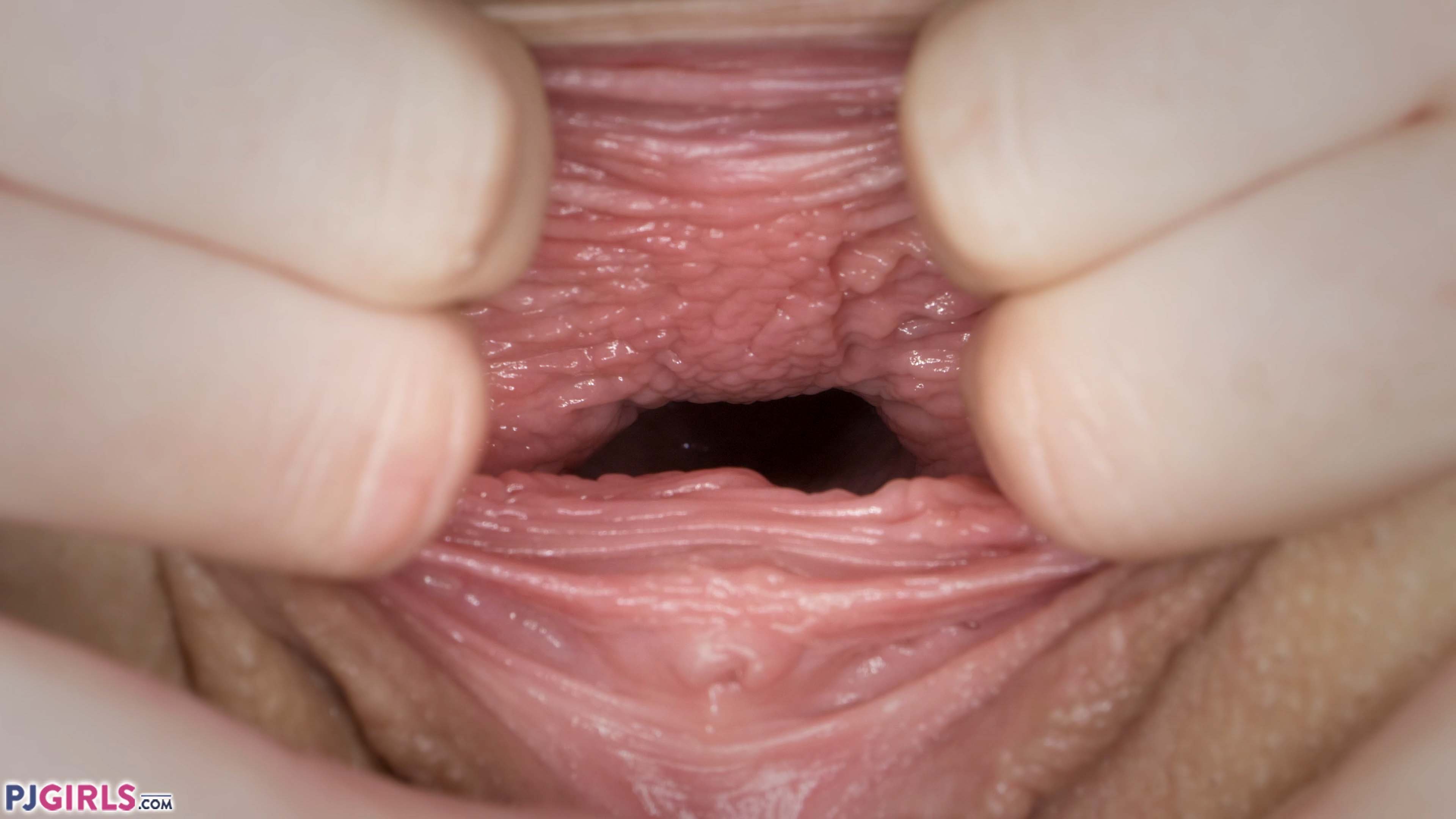 If you search online for Olivia's porn videos, you'll find that she is mostly featured getting reamed up the ass by a big cock. However, her skills as a vaginal gaper are unassailable. Some women take the delicate approach, and gently spread their labia apart, but some women, like Olivia, take the more direct approach. She starts by talking to us and teasing us, but then without wasting any time whatsoever, it is six fingers thrust deep inside her vagina, and hands pulling strongly apart to reveal all of the ripples and details inside, verbally exhorting us to look inside of her. It's fantastic watching a woman who is willing to flex her cunt so strongly, and she seems to definitely enjoy showing it!