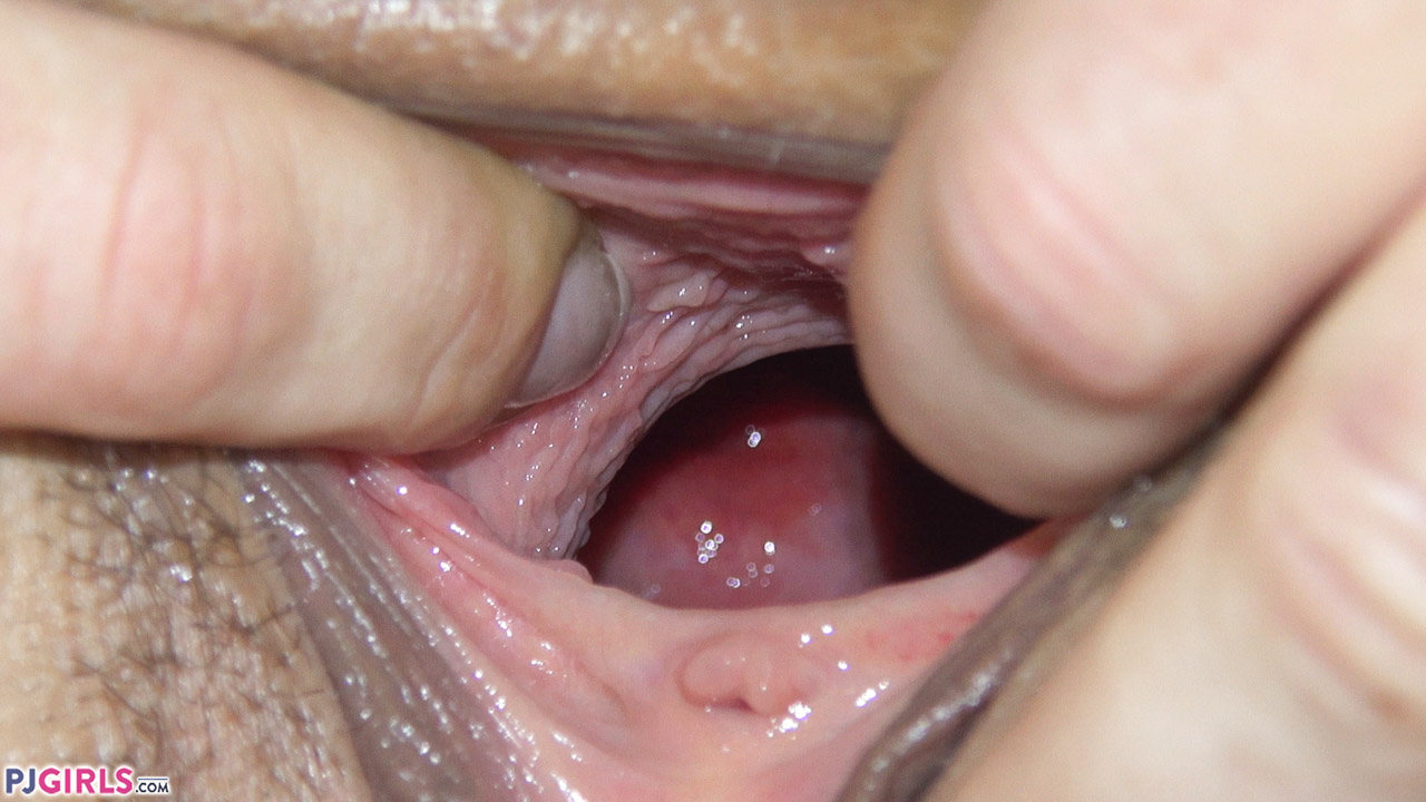 Lexi's front view is fabulous - but then again so is the rear. So, at 17 mins, she turns over to allow us to wallow in beautiful bum flesh. So tight are Lexi's muscles, I'd resigned myself to traversing her outer passage only. Incredibly however, at 20 mins, aided by the rear angle, Lexi opens right up to part the ways right to the cave end, her cervix clearly moving up and down for us.