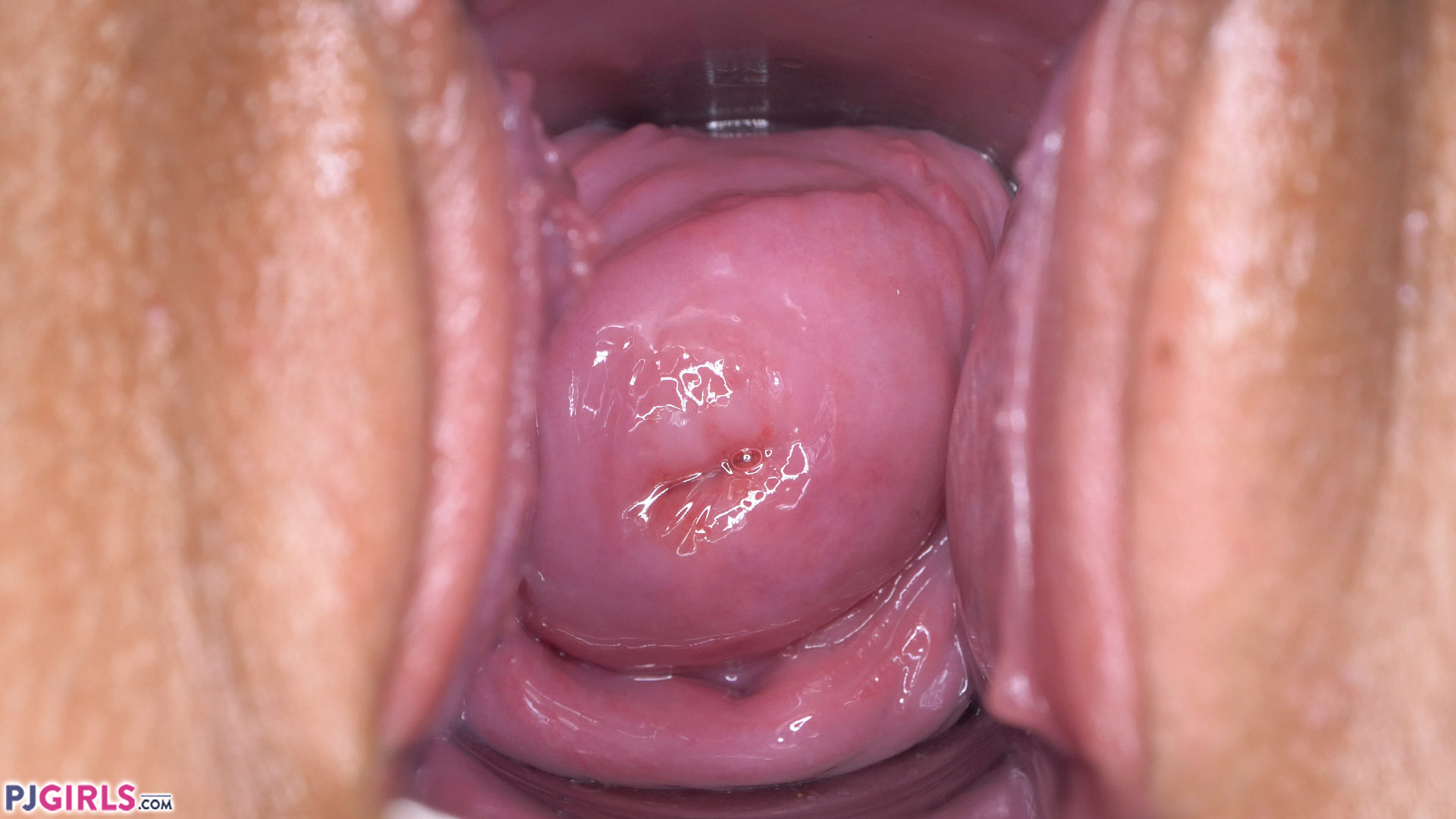 About a quarter way in, the speculum goes deep in her. Fans of Aneta will be greeted by the first sighting of her cervix, in all its glory. We take some time to look at it, inspect it, and worship it. It is a surprisingly healthy looking cervix that is as well looked after as the rest of her body. You might also notice how soaking wet her pussy is throughout.