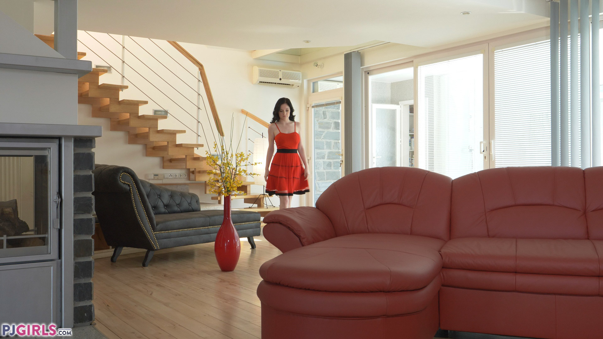 Angel is a pale beauty. Her skin is remarkably light colored from head to toe. Even her pussy seems to be a paler hue. You can tell from her choice of poses that she loves being bent over. Either that or she loves shoving her tits in people's faces. She gets herself bent over on the back of the sofa, and it is not the last time she bends over. She is not shy, considering how new she is as a PJG model, and gets that pussy open for you. She does a good job of maintaining the pose and the view, though she does not get a really deep gape going at any point in time. Her pussy is quite meaty, and will be a stunning vagina to see more of in the future.